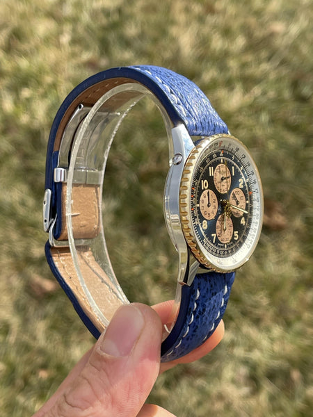 The Breitling Navitimer Airborne D33030 is a classic chronograph that embodies the rich aviation heritage of the Navitimer line. Known for its precise craftsmanship and distinctive design, this watch is both a tool and a statement piece for pilots and enthusiasts alike.