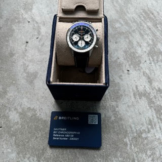 For sale is the legendary Breitling Navitimer B01 Chronograph 43, reference AB0138. A perfect blend of aviation heritage and modern precision, this timepiece is a must-have for watch enthusiasts and professionals alike.