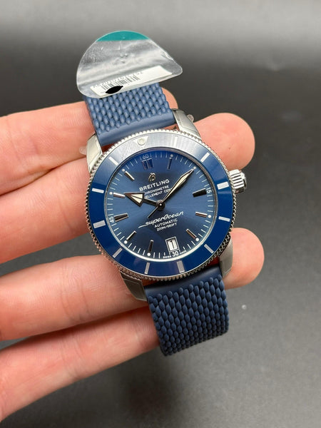 For sale is a Brand New in Box (BNIB) Breitling Superocean Heritage 42, reference AB2010, a perfect blend of vintage charm and modern engineering. With its striking blue dial and impeccable craftsmanship, this timepiece is a standout addition to any collection.