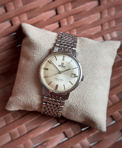 For sale is a beautiful Omega Seamaster De Ville, reference 166.020, from 1965. This classic timepiece embodies the timeless elegance Omega is renowned for, featuring a stainless steel case and the distinctive crosshair dial that collectors love.