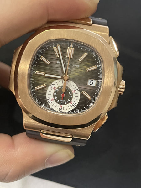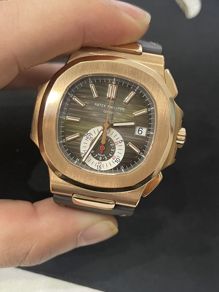 This Patek Philippe Nautilus 5980R is in exceptional condition, showcasing its radiant rose gold case and bracelet with minimal signs of wear. The brown gradient dial is flawless, and the movement has been professionally serviced to ensure peak performance. A timeless statement piece for discerning collectors.