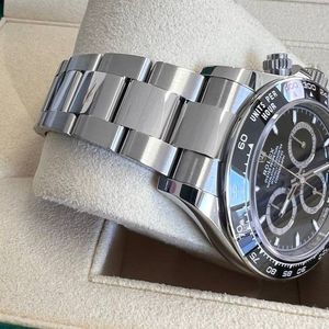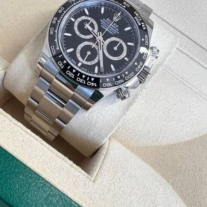 A stunning modern interpretation of the classic Rolex Daytona Cosmograph, model 126500LN, showcasing the precision and style that make it a legendary timepiece. With a sleek 40mm stainless steel case and a striking black dial, this watch is a testament to Rolex's timeless craftsmanship.