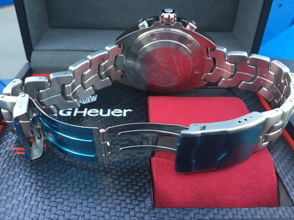This TAG Heuer Formula 1 Senna Calibre 16 is in excellent condition, with the case and bracelet showing minimal wear. The movement has been fully serviced and is keeping precise time. A must-have timepiece for racing enthusiasts and TAG Heuer collectors alike.